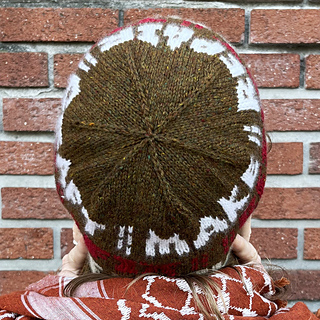 Brim and crown patterns are written, colorwork body is charted (one large chart for each of the four sizes); notes are included for choosing your size, gauge swatching, stranded colorwork. Hat is knit in the round from bottom to top.