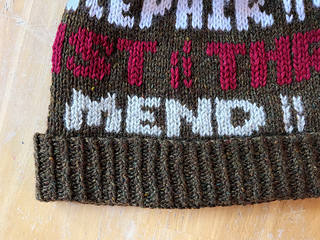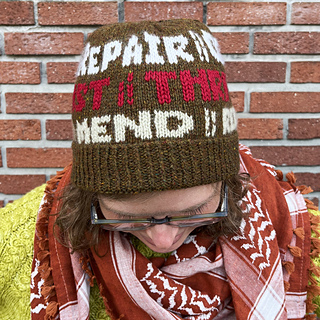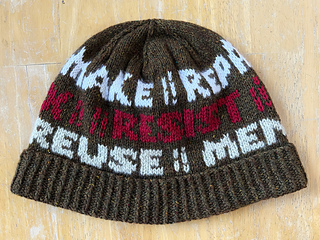 This is part of a collection of six Favorite Things hat patterns—wearing this one will let the world know that you love resisting overconsumption!