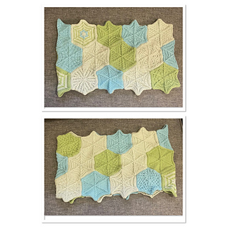 Whatever the size of your chosen final project, it will be created from a series of individual knitted hexagons. This means you can always have a tiny project for when you need something super-portable or as a project that you can pick up and put down between other larger projects that you’re working on.