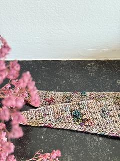 The scarf is worked from the bottom point upwards in rows.