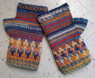 These Tunisian crochet mittens are made flat top-down and seamed.