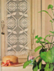 Stylized 8-petal flowers, diagonal stems with leaves.