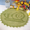 Light green filet doily depicts a snail.