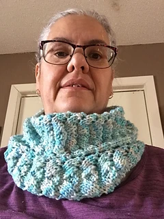 The cowl is knitted sideways, starting with a provisional cast on or longtail cast on, then joined later either by Kitchener Stitch graft or a Three Needle Bind off/Cast off.