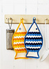 Crocheted fish pot holders add a playful touch to your kitchen. The pot holder’s lively scale texture is created by crocheting shell stitches in different colored yarns. This quick crochet project makes a wonderful gift for a housewarming or an avid home chef.