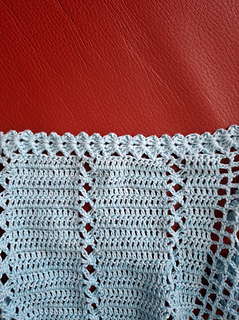 This is a fun shawl to work up and watch grow. It incorporates Filet work with small clovers hanging at the ends. These are staggered to give a unique look.