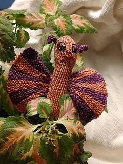 Fjärilen Fanya stickas runt i ett stycke från huvud till stjärt, och antennerna virkas direkt på huvudet. Vingarna stickas med förkortade varv för att få en mjuk, böljande form och sys sedan fast på kroppen.