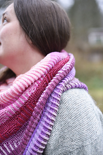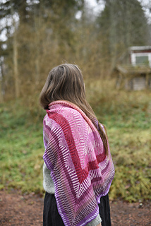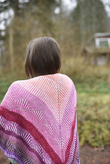 Fleur Shawl is a symmetric v-shaped shawl featuring brioche and garter stitch colorwork.
