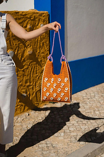 Verkkokassi on kesän trendikkäin valinta. Voit käyttää sitä sellaisenaan tai lisätä pintaan vielä persoonallisen säväyksen virkkaamalla ruutuihin kukkia. Kukkien keskusta kiinnittyy yhden neliön pylväiden ja ketjusilmukoiden ympärille. Valkoisella virkatut koristesaumat korostavat laukun kolmiulotteista muotoa.