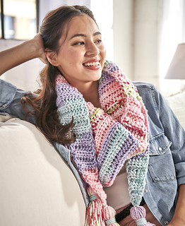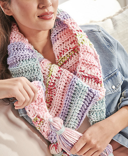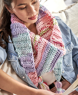 This Scarf is worked flat, sideways, from end to end. The first half increases to the maximum width/center depth and the second half decreases back down to a point. Half double crochet stitches are worked through the back loop for added texture.