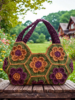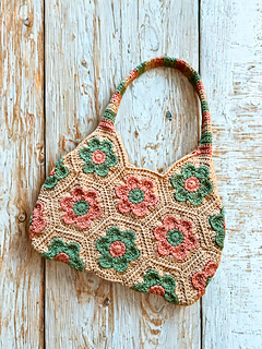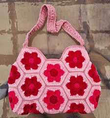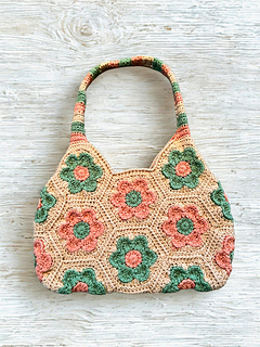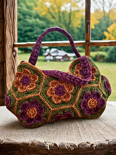 The PDF contains hexagon motif and bonus pentagon and diamond motif that can be used for multiple of the included bag designs. Various bag diagrams are included in the PDF including those for pictured bags. Refer also to listed YouTube tutorials for guidance with two of the motif rounds.