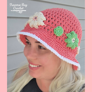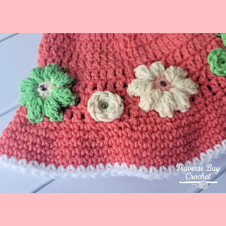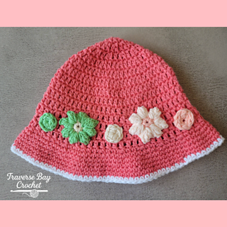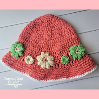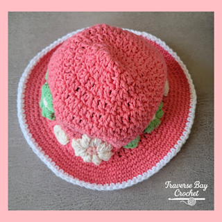 The Elegant Flower Sun Hat is a beautiful and fun crochet project featuring a classic sun hat shape with adorable puff flowers and small circle accents.