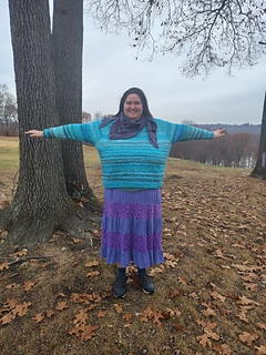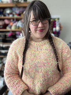 The Fluffball Raglan is designed to be a simple raglan sweater knit with fluffy/fuzzy yarn for the ultimate cozy factor. It is a crew neck style, and is worked top down with some neck shaping, compound raglan shaping, and optional bust darts/waist shaping. The sleeves are intended to fit a little loosely, with a slight taper down to the ribbed cuff. The sweater is designed to fall at a slightly cropped length but you are welcome to modify length as desired. It is intended to be worn with 4-8 inches / 10-20 cm of positive ease. It is a size inclusive design with sizes written every 4 inches / 10 cm from 32-72 inch / 80-180 cm finished bust circumference.