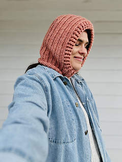 Balaclava worked in one solid piece, with instructions written in sections: Hood (Rows), Chin (Rows), Seam (Row), Face Border (Rounds).