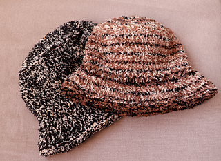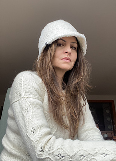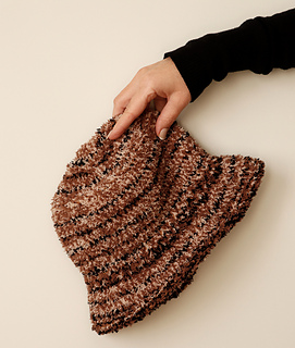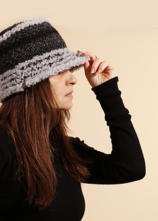The Fluffy Bucket Hat is worked in two different strands of yarns held together from the top down in the round. The furry yarn is for fluffy vision, the other one for a tightness. For stability of the hat’s construction, it is knitted with a smaller needle size than recommended for the yarn category.