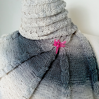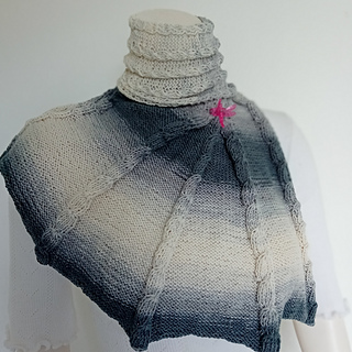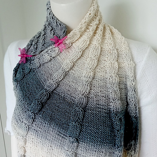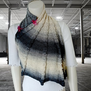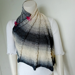The elongated wing shape, paired with beautifully variegated batik yarn, creates an elegant vertical texture with striking visual depth.