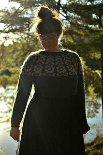 This is a round yoke sweater with short rows and raglan increases to offer a better fitting garment. The body is worked straight and is easily lengthened. It has a split hem. The sleeves are tapered.
