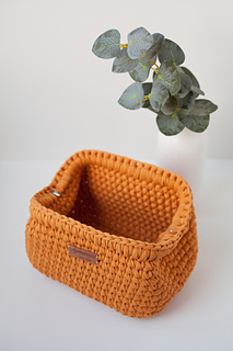 You can use any T-shirt yarn 7-9 mm wide and 7 mm hook (or crochet hook that is convenient for you when using such kind of yarn).