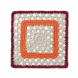 Update the classic granny square with pairs of double crochet stitches (instead of the classic trios) interrupted by a simple single crochet section.