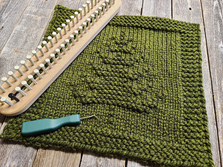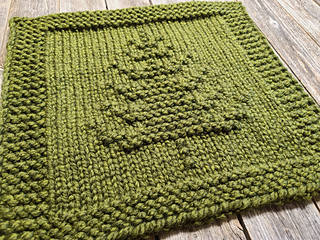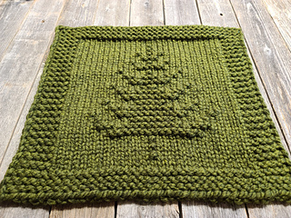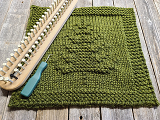LOOM Knitting Pattern ♥ The Fraser Fir Tree Square is worked flat from the bottom up. It features a garter stitch border and a center tree motif. A chart and written instructions are included.