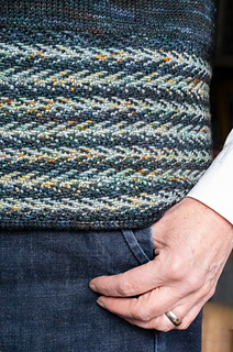 Freight is knitted in Ainsworth & Prin Plump Sock a DK weight yarn which gives good stitch definition. The sample shown is in Nightjar and Sea Witch.
