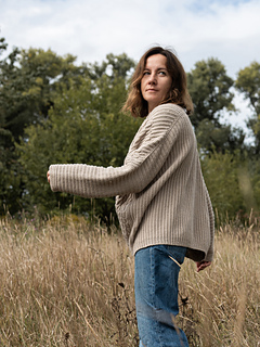 The Freya Cardigan consists of two front panels and one back panel, worked vertically in rows back and forth. The two front panels are worked separately first using short-row techniques, followed by the back panel.