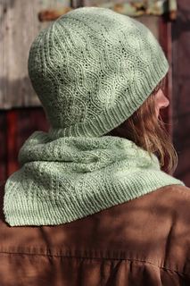 The cowl is mainly worked in the round. It starts with 1x1 ribbing, followed directly by the pattern which is shaped entirely by decreases and increases. The lower section is finished in rows to create a slit, making the cowl particularly comfortable to wear. The final section is worked in 1x1 rib again. Cast-on and bind-off can be worked with the tubular method for a professional finishing touch.