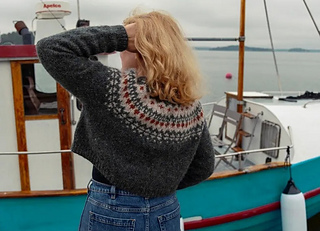 En rustik tröja i islandsgarn med ett gulligt ok, där ökningarna göms i mönstret. Tröjan är midjekort, men kan enkelt förlängas. Tänk då på att köpa några extra nystan av bottenfärgen.