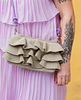 Näyttävän juhlalaukun tai arkea muuten vain ylevöittävän pikkulaukun voi virkata näppärästi itse. Tee ensin frillat. Alun silmukkaketjuihin lisätään silmukoita niin, että kappale alkaa lainehtia. Laukku suljetaan vetoketjulla ja sen reunoihin tulee erilliset kaitaleet. Laukkuosan virkkaaminen alkaa pohjasta. Röyhelöt ja vetoketjukaitaleet kiinnitetään laukkuun työn edetessä.