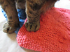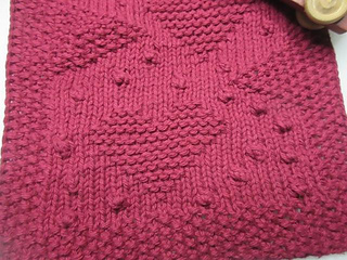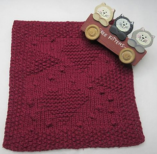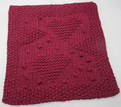 From Furballs with Hearts 傻貓送愛心 is a 8 1/4” / 21 cm square dishcloth with heart pattern in garter stitch. A designed seed stitch border and scattering popcorns add another layer of interest to the fabric’s texture.