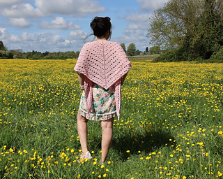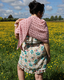 This elegant, shallow triangle crochet shawl is worked in rows using filet crochet techniques to create arced lines blooming out from a central furrow. The furrow and flourish shawl is an engaging crochet project that will keep you interested from start to finish, using a memorable but interesting 4 row pattern repeat. It can be made in different yarn weights for a lighter or more cozy finish.