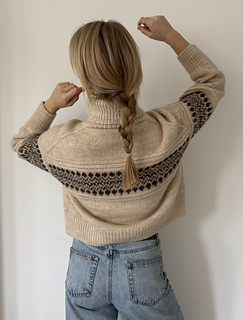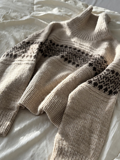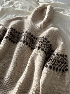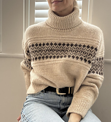 * Yarns used in pictures are: Alpaca Blow by Sysleriget and Brushed Deluxe by Sysleriget both in shade Sandstone for the main colour and Alpaca Blow by Sysleriget in shade Pecan Brown held together with Brushed Deluxe by Sysleriget in shade Gateau Marcel for the contrast colour.
