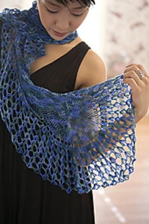 I lived on the Mediterranean Sea for several years and had the distinct pleasure of viewing emerald and sapphire seas every day. The infinity motifs in this wrap remind me of the swirling tides of the water, while the color of the yarn brings back wonderful memories of the sea.