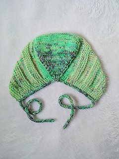 This bonnet has two versions: one with wavy garter stitch sections and another with straight garter stitch sections.