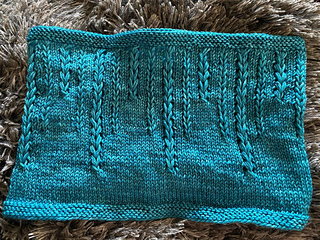 This quick cowl uses only 1 skein of DK yarn with the option of adding a contrasting Slub yarn to highlight your Large-Gauge Stitches. Because the fancy steps all happen towards the end of the project, this is the perfect cowl for Zoom knitting since it is worked as stockinette in the round for about 90% of the time.