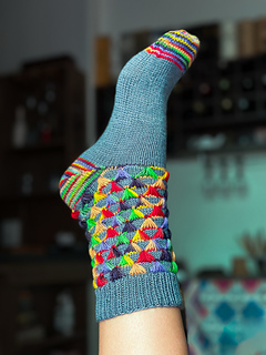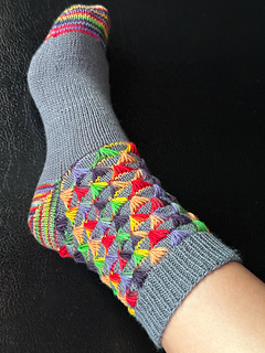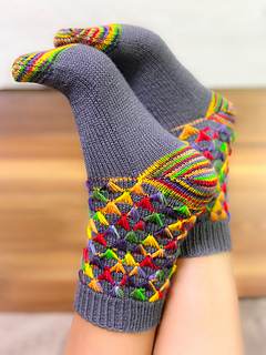 Inspired by the vivid beauty of Gazania flowers, famed for their sharply defined, pointy petals, the Gazania Socks capture the same striking elegance through bold, structured stitchwork. Each element mirrors the flower’s rhythmic geometry, creating a design that feels both dramatic and refined. These socks are where nature meets artistry — transforming simple stitches into a wearable piece of floral-inspired art.