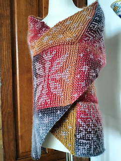 You work the modules one by one, each telling a part of the story. The snowflakes sit on the bias, like drifting crystals in a winter wind, then their paths meet through the Joining Triangles, those small bridges of stitches that bring everything together. The triangles don’t just unite the modules; they steady the scarf, levelling the edges.
