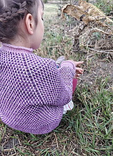 This is a basic raglan sweater in a wonderfully textured stitch pattern, which I call the sprouted seed stitch. The sweaterful of sprouted seeds then became Germination! Choose your own color palette of two or more colors and explore the endless possibilities!