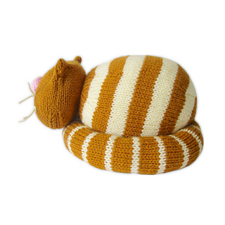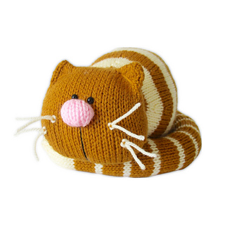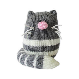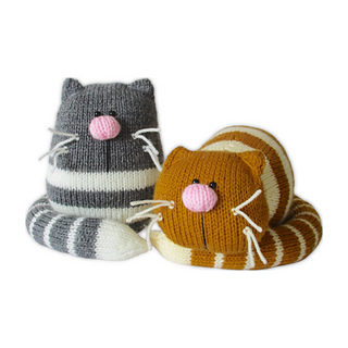 What a pair of lazy fat cats! Ginger, the orange striped cat, is having a little lie down, (they could make a sweet doorstop) and Smudge the grey cat is waiting for a head scratch (they could also be used as a bookend). Designed by Amanda Berry @fluffandfuzz, the cats are knitted in acrylic DK yarns on single pointed needles (not in the round). Smudge uses kitchener stitch, an invisible grafting technique, to finish the top of their head.
