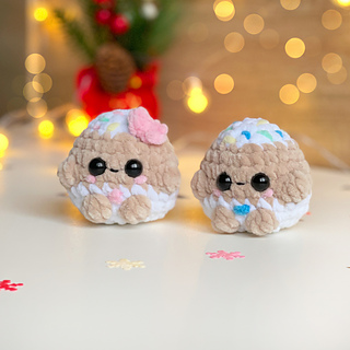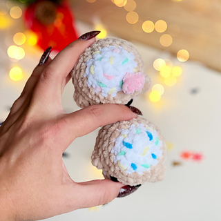 This pattern includes a gingerbread duo — two tiny plush cookie-style characters, perfect as keychains, ornaments, or Christmas gifts