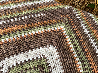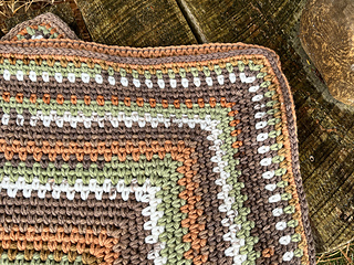 Crochet in rounds using the moss stitch and letting the colours of the yarn expose the beautiful texture and colour way.