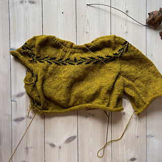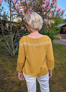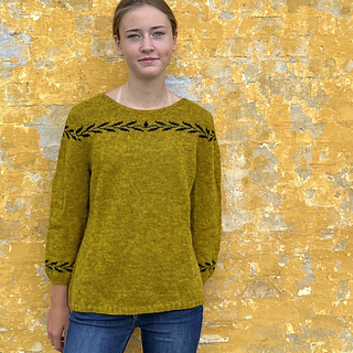 Girlang Light is an airy and simple tailored Ziggurat pullover with an elegant leafy garland on the yoke and cuffs.