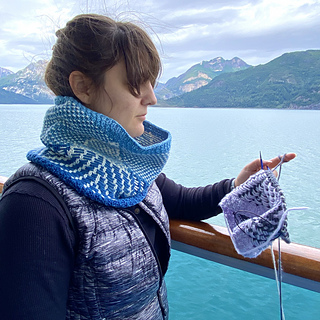 Knitting can be like that, too. We work slowly over days, weeks, or months, then suddenly something is born of our efforts. In this case, a cowl jumped off the needles just in time to warm our necks on the Seascape Knit Trips Alaska 2025 cruise, and now it’s available for everyone. May you enjoy the knitting!