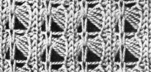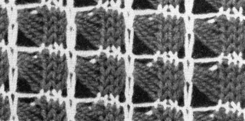 Note: This garment can be made up on the plain or purl side of the knitting; if the purl side is used remember to work the buttonholes on the right front. Six different patterns can be used in the panels. On our model pattern Number 3 was used.