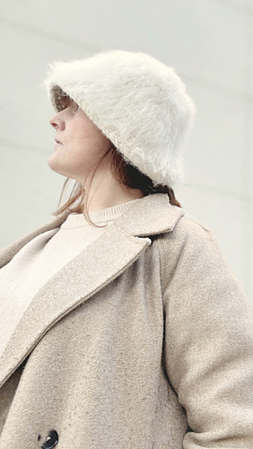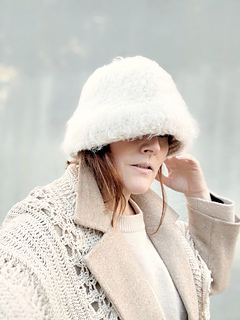 El gorro se teje de una única pieza, de arriba abajo en circular, cerrando las vueltas con punto raso. Todo el patrón se teje a doble hebra en punto medio alto.