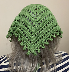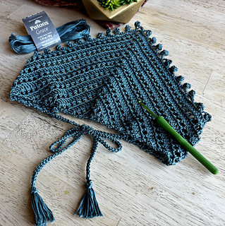 Bandana instructions written in sections, but worked in one piece from the center out without fastening off: Bandana (rows), Ties & Edging (rows)