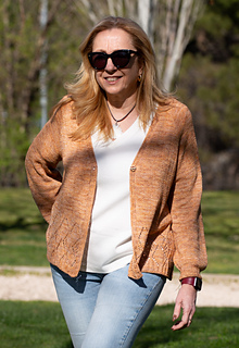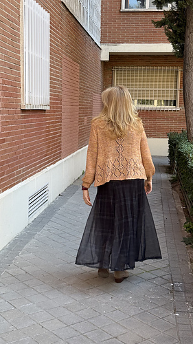 El Cárdigan Grafito es un diseño elegante y versátil, tejido de arriba hacia abajo (top-down), que combina comodidad con detalles delicados. Presenta calados en la espalda y en la parte inferior del cuerpo, lo que le aporta un aire ligero.