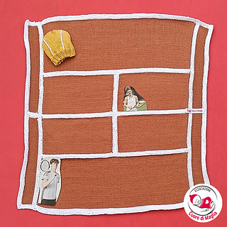 La copertina è lavorata a più colori: si esegue prima la parte principale del campo, dal basso verso lato, quindi si aggiungono le due fasce laterali, riprendendo le maglie sui due lati lunghi.