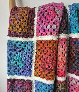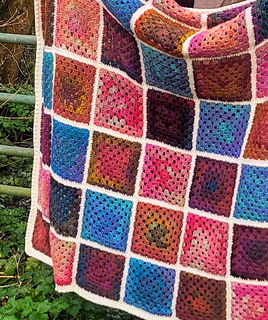 A gorgeous crochet blanket made up of simple, relaxing granny squares that are perfect for portable crochet. Each square can be made at your own pace, then joined together and finished with a cream border that neatly frames the colours.