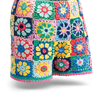Create a pair of granny shorts using an existing pair of shorts as your model. Mikey created a square he loved and then used the final round to join as you go. Included in the design are his steps and photographs of his decisions to make his own shorts. They were a sensational hit.